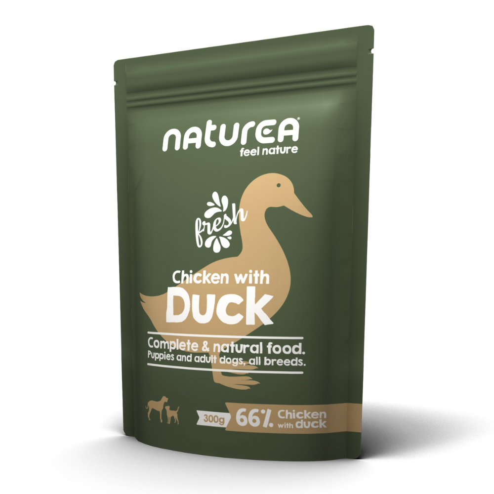 Además de la carne fresca de pollo, hemos añadido pato, consiguiendo una comida capaz de sorprender incluso a los perros más exigentes.
